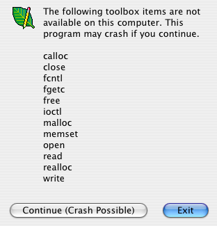 MacWise and OS X Toolbox ErrorYou may get an error message when you run MacWise that says, "The following toolbox items are not available on this computer." If the file is in the correct location and you are getting this error, it probably has the wrong file type assigned to it. Download the StdCLib_fix.zip file and unzip it (if you are using Safari, it will unzip automatically). Double Click to run StdCLib fix PS: Just in case you wanted to know, the file type should be "shlb" and the creator should be "MACS" NOTE: MacWise does not install or modify the STDClib file. It is included with OS X.